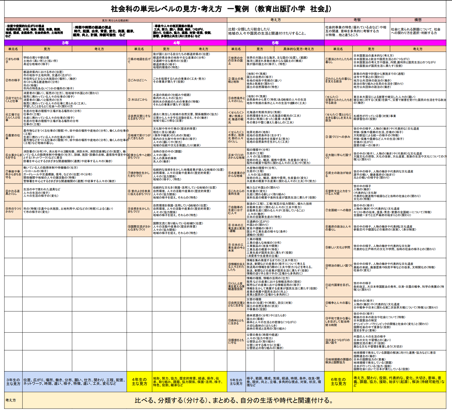 先日、社会科の「見方・考え方の一覧」を研究部に提案しました。