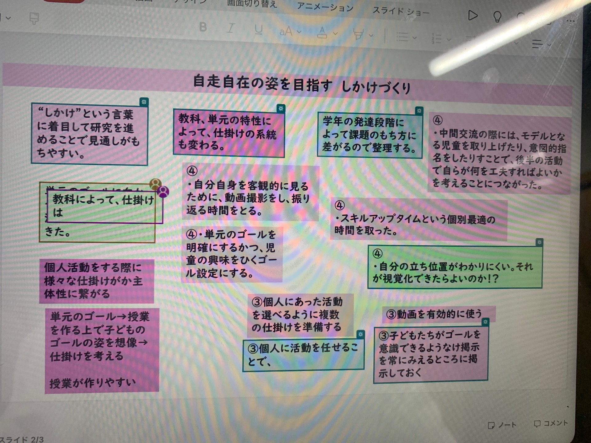 最後に自分たちの方向性を発表して研修終了!!互いのチームの方向性を知ることで、他の公開授業にいってみたい気持ちがわいた人たちもいました!