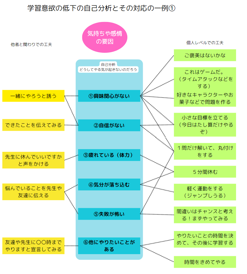 あとは、折を見て、やる気が起きないと困っている人に、どんな状態かなと聞いてみたり、その対処を一緒に考えていくとよいかもしれません。